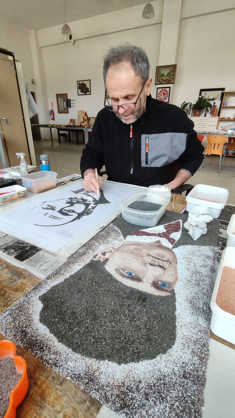 Zamanla bu alandaki çalışmalarını geliştiren Uyar, mermer parçalarını toz haline getirerek kum sanatına da yöneldi.