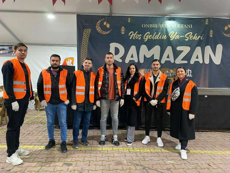 Bucak İşletme Fakültesi, Halkla İlişkiler ve Tanıtım Bölümü 3. sınıf "BİFGÖNÜLLÜLER" öğrencileri gönül ayı Ramazan'da ilçemizde her gün yüzlerce kişinin orucunu açtığı iftar çadırında yemek dağıtımına yardımcı oldular.