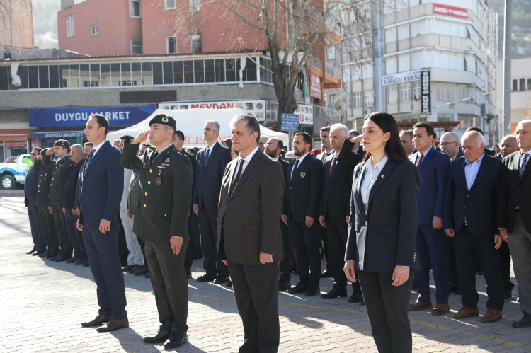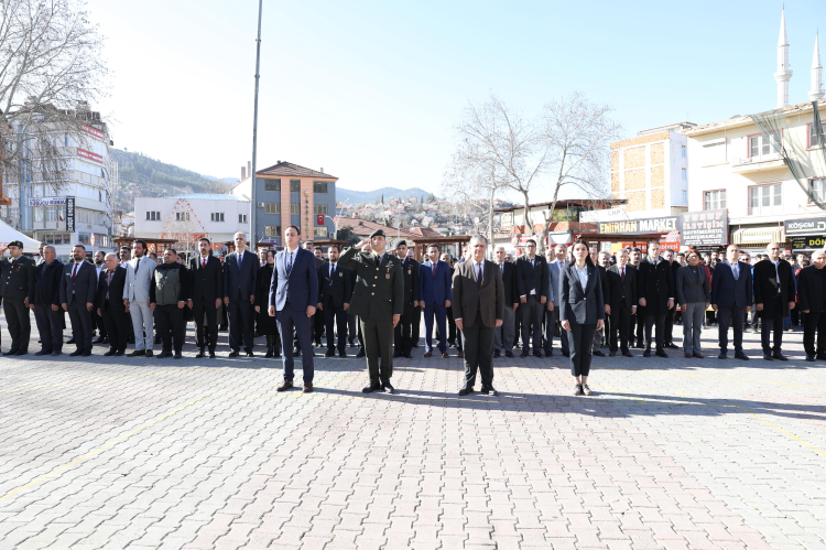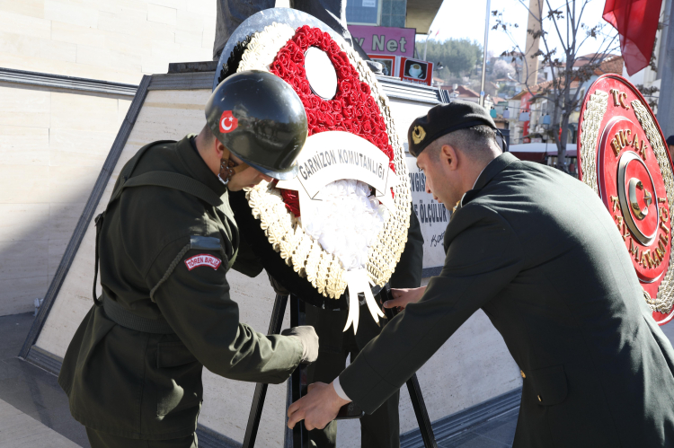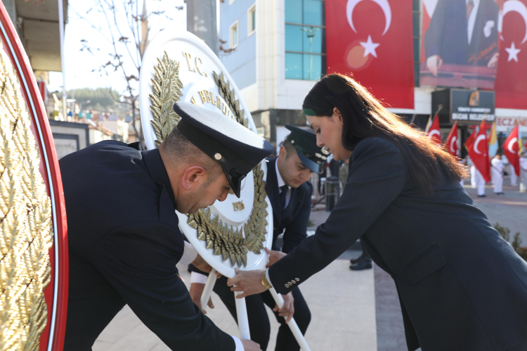 Kaymakamlık, Garnizon Komutanlığı ve Belediye Başkanlığı çelenginin Atatürk Anıtı’na sunulmasının ardından saygı duruşunda bulunularak, İstiklal Marşı okundu.