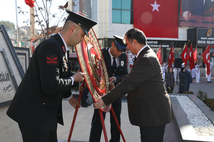 18 Mart Çanakkale Zaferi ve Şehitleri Anma Günü dolayısıyla, Burdur’un Bucak ilçesinde Atatürk Anıtı’na çelenk sunuldu.