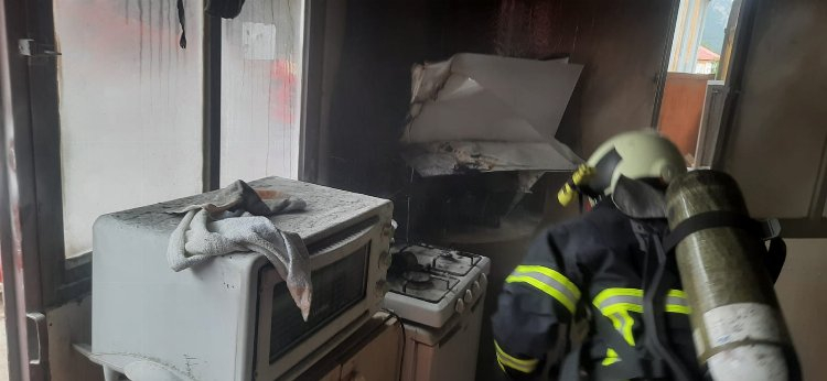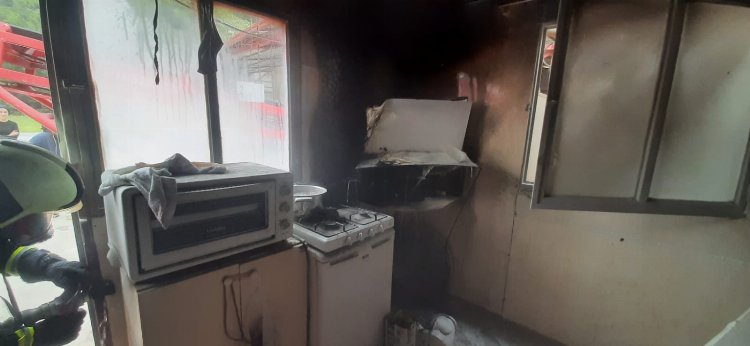 Mutfakta ocaktan kaynaklı meydana gelen yangın işyeri sahibi tarafından söndürülürken İtfaiye ekipleri söndürme çalışması yaptı.