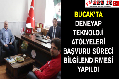 Burdur Bilim, Sanayi ve Teknoloji İl Müdürü Mehmet Yörük ve beraberindekiler Bucak İlçe Milli Eğitim Müdürü Hakan Camcıoğlu' nu ziyaret ederek Deneyap Atölyeleri katılım başvurusu ve e-sınav süreci ile ilgili bilgilendirme yaptı.