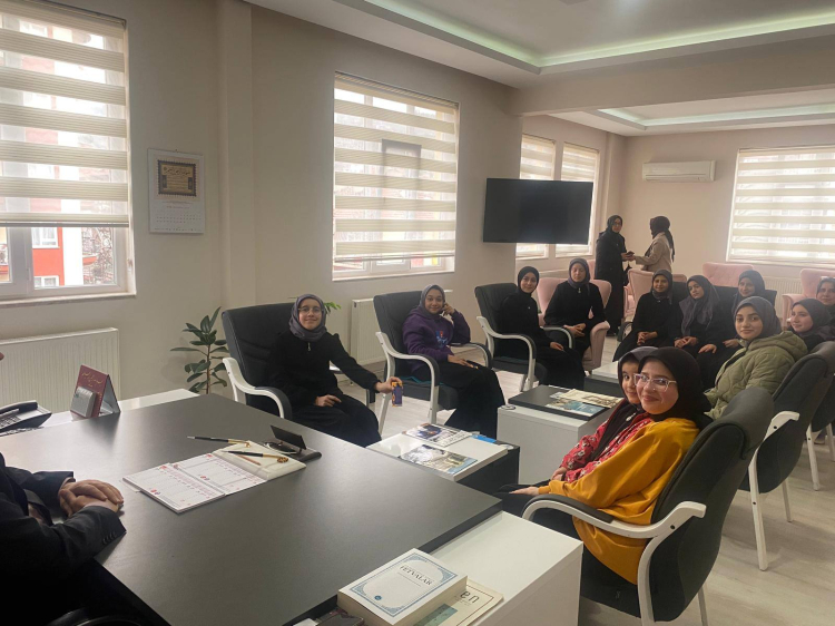 Bucak Yeni Mahalle Hafızlık Yatılı Kız Kuran Kursu öğrencileri İlçe Müftüsü İbrahim Keser'i ziyaret etti.