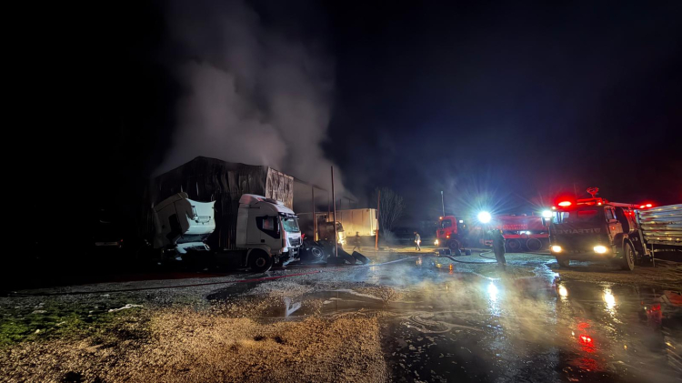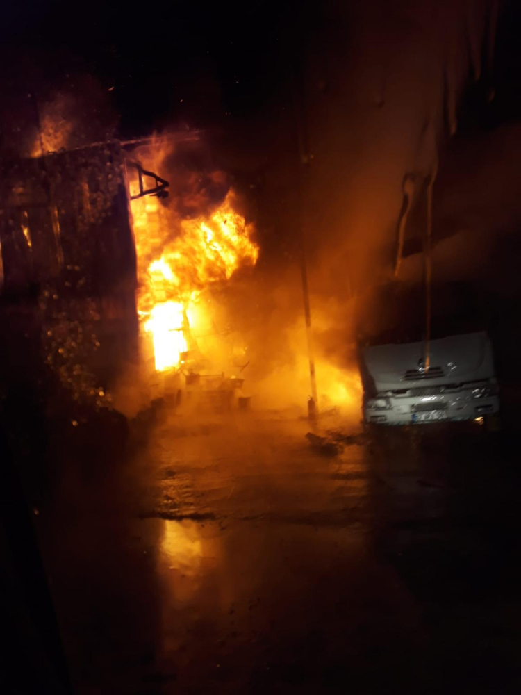 Öte yandan yangında ofis ve yedek parça deposu tamamen kullanılmaz hale gelirken servis içerisinde ve yanında bulunan 2 adet çekici, 1 adet kamyon ve 1 adet dorse hasar gördü.