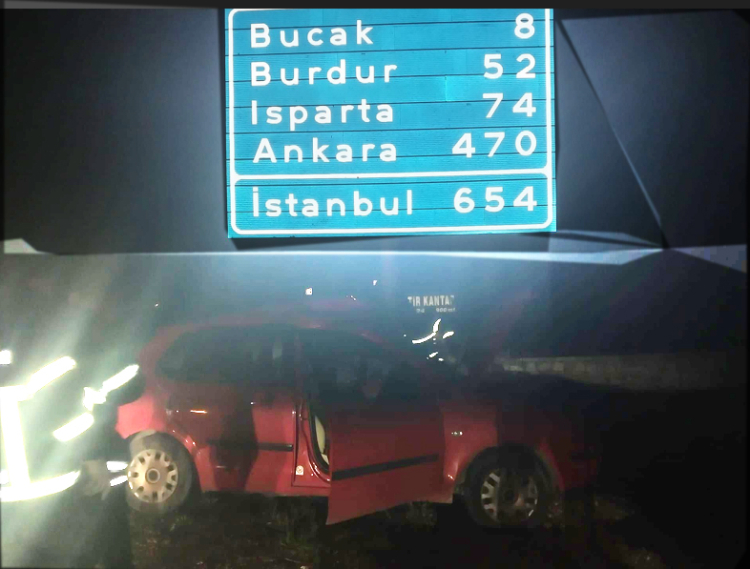 Edinilen bilgilere göre bugün gece saat 00.50 sularında Antalya- Burdur Karayolu üzerinde seyir halinde olan 15 SE 803 plakalı otomobil Bucak ilçe merkezine 8 km mesafede sürücünün direksiyon hakimiyetini kaybetmesi sonucu kontrolden çıkarak yol kenarındaki levhaya çarptı.