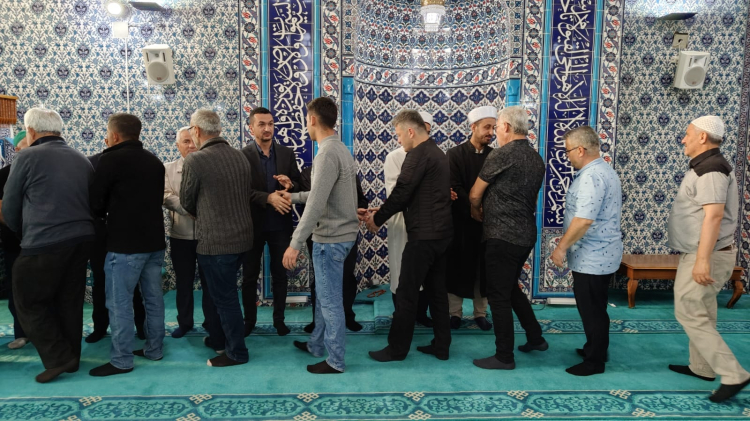 Namaz çıkışı cami cemaati bayramlaşma geleneğini sürdürdü. Cami Cemaati birbirleriyle bayramlaşarak Kurban Bayramı’nın manevi atmosferini yaşadı. Bayramlaşmaya Milletvekili Mustafa Oğuz da katıldı.