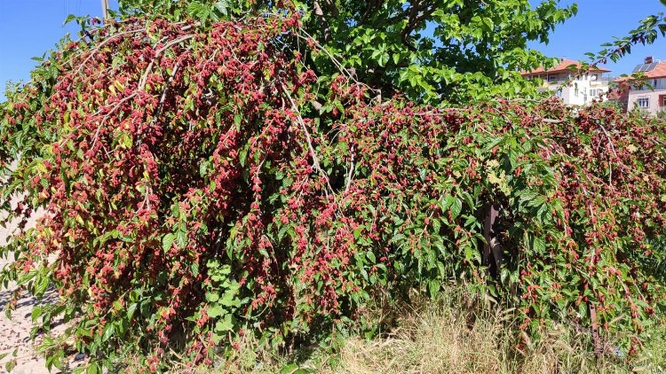Yapraktan çok meyvesi olan dut ağaçları, verimdeki bolluğu da gözler önüne sererken vatandaşlar bu yıl dut meyvelerinde bolluk yaşandığını söylediler.