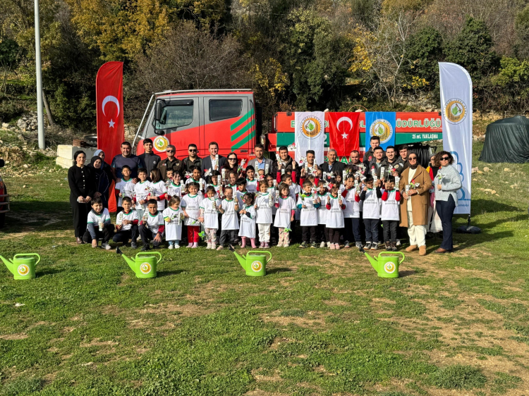 Proje kapsamında Bucak Kırmızı Bağcık Anaokulu ve Çamlık Kavaklı İlkokulu öğrencileri ağaç fidanlarını toprakla buluşturdu.