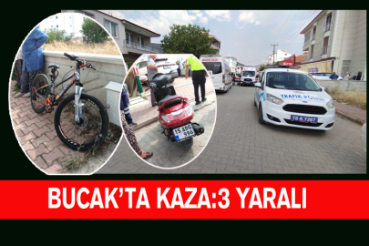 Edinilen bilgilere bugün saat 16. 00 sularında Bucak Mehmet Akif Mahallesi Zafer Caddesinde motosiklet ile bisikletin çarpışması sonucu meydana gelen trafik kazasında 3 yaralandı. İhbar üzerine olay yerine sağlık ve polis ekipleri sevk edildi.