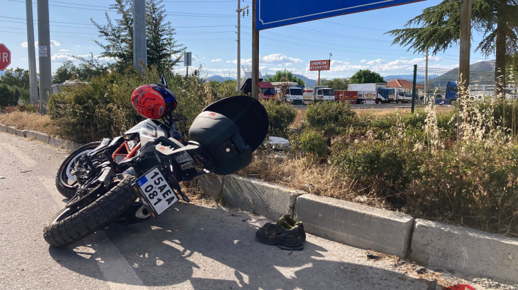 Kazada motosiklet sürücüsü yaralandı. Edinilen bilgilere göre bugün saat 17.25 sularında Antalya Burdur Karayolu Alparslan Türkeş Bulvarı Mustafa Konu kavşağında 15 AEA 081 plakalı motosiklet ile 07 ZZ 033 plakalı otomobilin çarpışması sonucu trafik kazası meydana geldi.