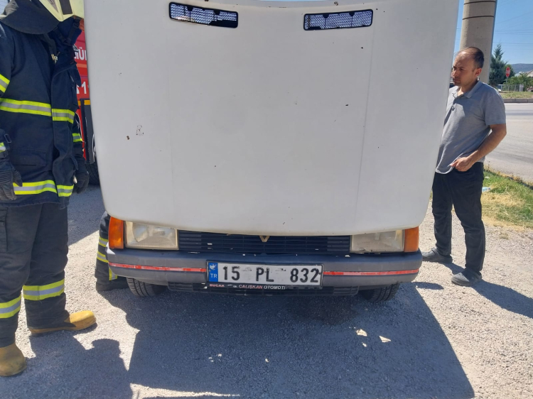 Bucak'ta bir aracın motor kısmında küçük çaplı yangın çıktı.