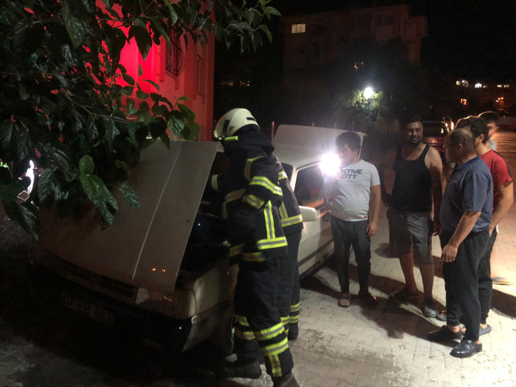 İtfaiye ekiplerince yapılan müdahalede otomobilin motor bölümünde başlayan yangın söndürüldü.
