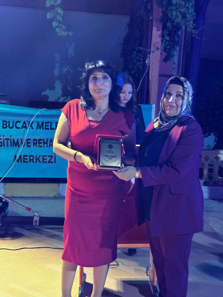 Öğrenci Velisi Aysel Şanlı da özel çocuğunun bu günlere gelmesinde yaşadığı mücadeleyi ve zorlukları anlattı. Yılın annesi seçilen Aysel Şanlı’ya plaket verildi.
