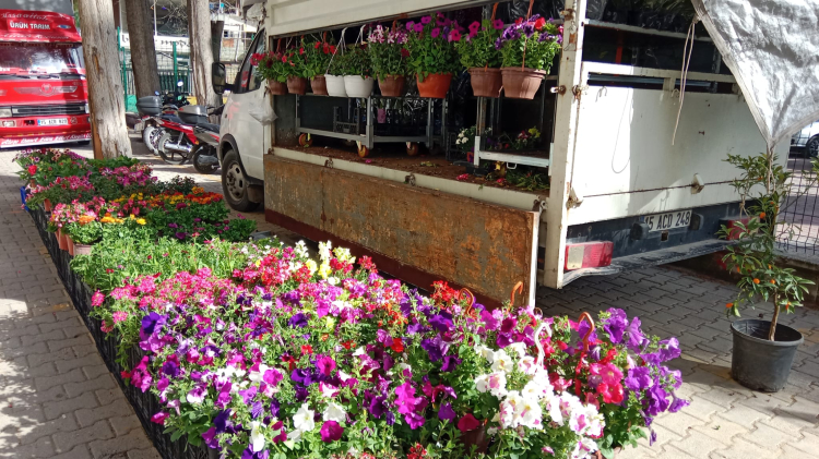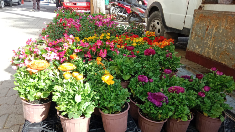 Çiçekler adeta pazara bahar getirdi. Evinde salona, bahçesine çiçek dikmek isteyenler çiçek satıcılarının yolunu tutuyor.