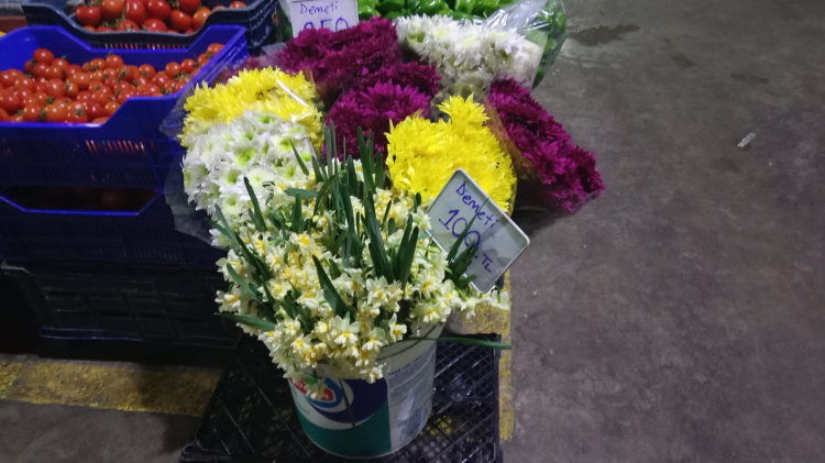 En çok Kasım çiçeği talep görüyor. Bu çiçeklerin mevsimi Mart ayına kadar sürer. Bucak’ta çiçeklere de talep var. Her hafta getiriyoruz. Sebze fiyatlarımız da 80 ila 100 lira arasında değişiyor.