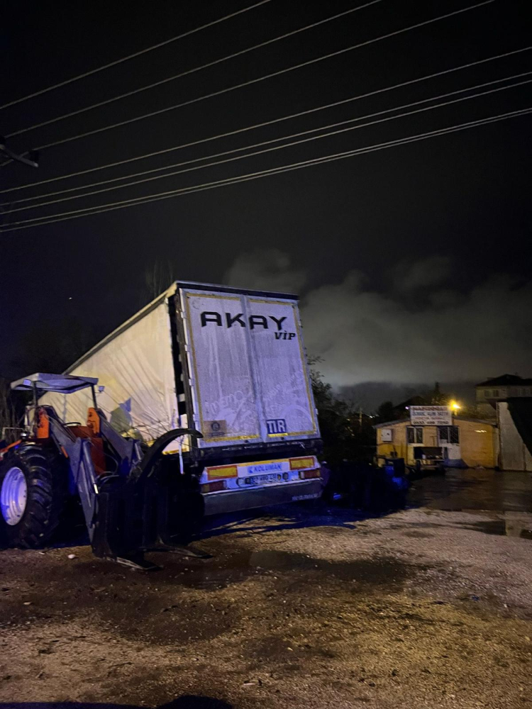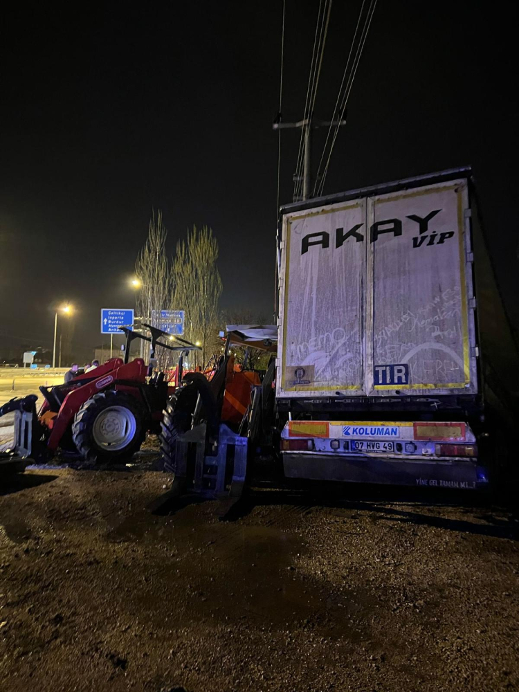 Edinilen bilgilere göre Bucak’ta dün gece saat 23.00 sularında Kahveler Mevkiinde seyir halinde olan 07 HVG 49 plakalı tır kontrolden çıkarak yol kenarında bulunan iş makinalarına çarptı.