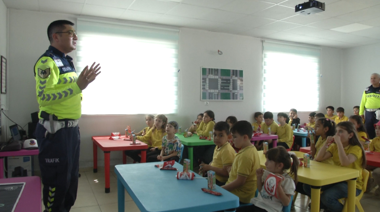 Jandarma personeli tarafından öğrencilere teorik bilgi verildi. Ardından emniyet ve jandarma personeli tarafından öğrencilere, trafik kuralları konusunda uygulamalı eğitim verildi.
