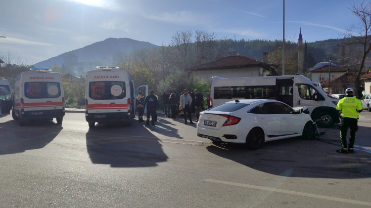 Edinilen bilgilere göre, Bugün sabah saat 08.10 sularında Pazar mahallesi Ramazan Selen Bulvarı üzerinde 16 CVC 59 plakalı otomobil ile 15 C 4072 plakalı okul servisi çarpıştı.