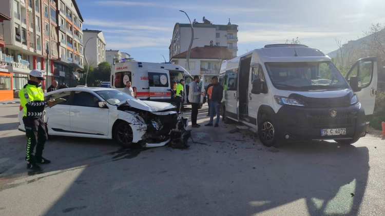 Burdur'un Bucak İlçesinde otomobil ile okul servisinin çarpışması sonucu meydana gelen trafik kazasında 4 kişi yaralandı.