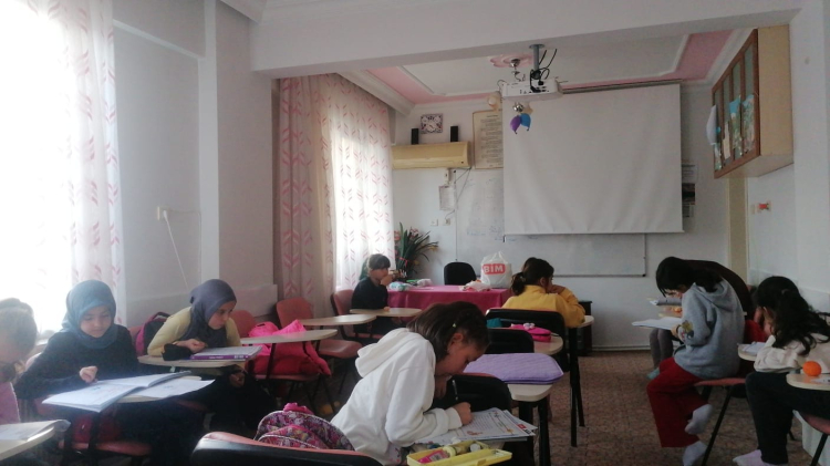 Programda çocuklar ödevlerini yapıyorlar ve etkinlik yapıyorlar.