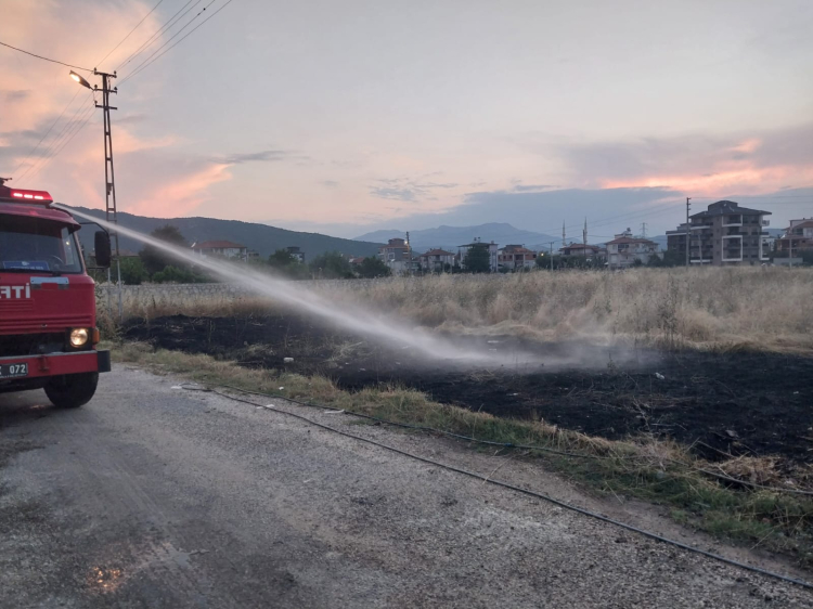 Burdur'un Bucak ilçesinde turba yolunda çıkan arazi yangını büyümeden söndürüldü