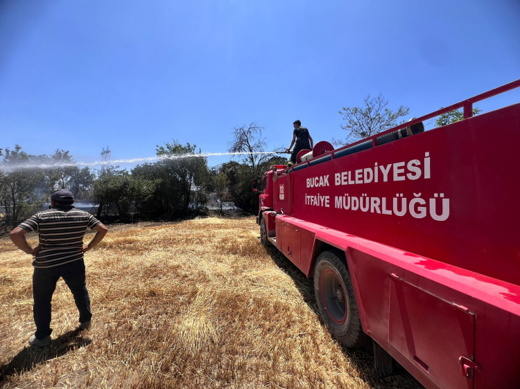 Yangının büyümesi nedeniyle yapılan İhbar üzerine olay yerine Bucak Belediyesi İtfaiye Müdürlüğü ekipleri sevk edildi.