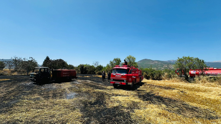 Yangına müdahale esnasında köy Muhtarlığına ait itfaiye aracı yanarak kullanılamaz hale geldi.
