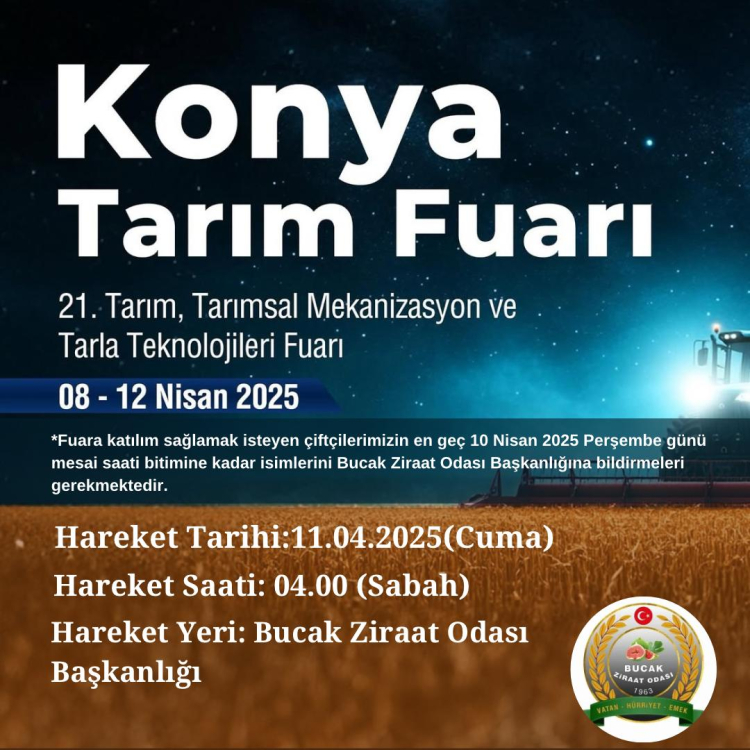 Bucak Ziraat Odası, çiftçileri 8-12 Nisan tarihleri arasında 21. düzenlenen Konya Tarım Fuarı’na götürecek.