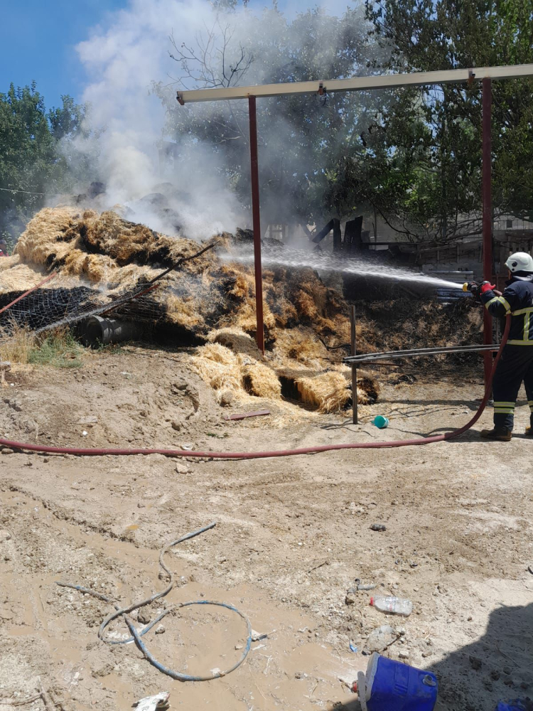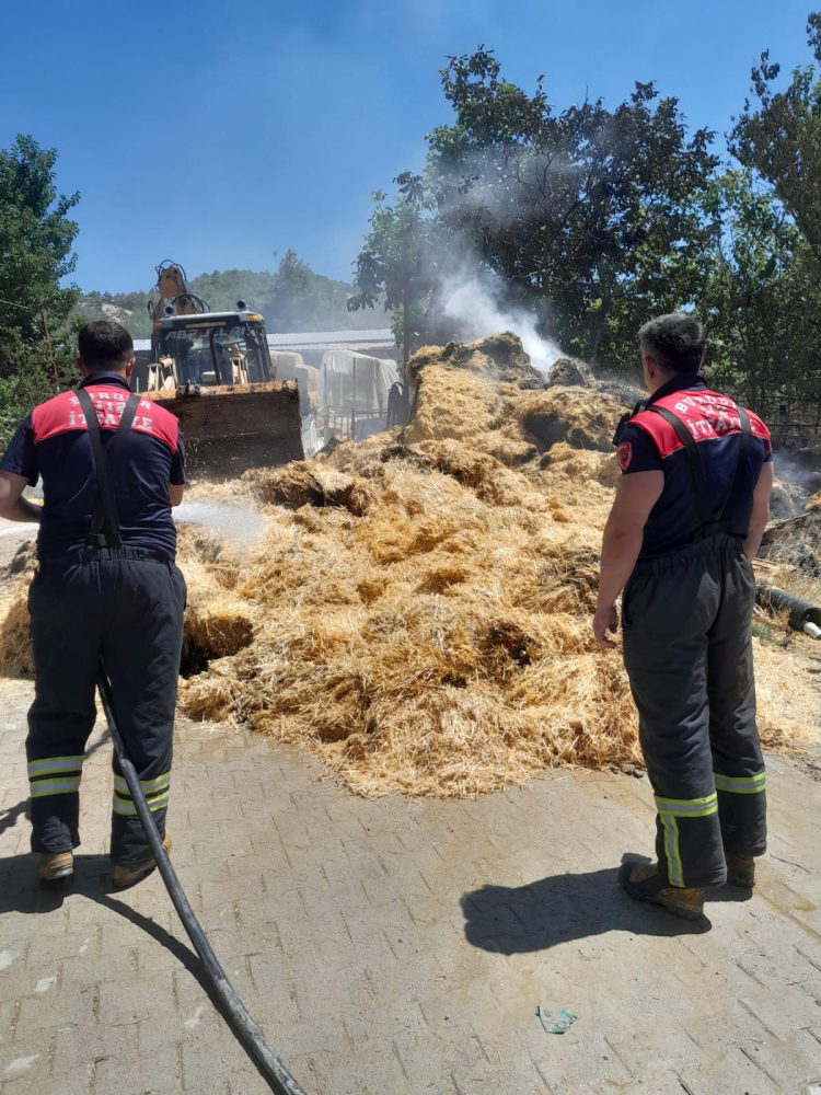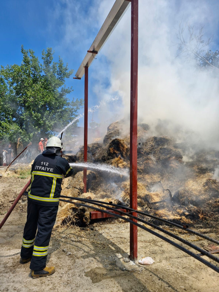 Yangında yaklaşık 250 saman balyası zarar gördü.