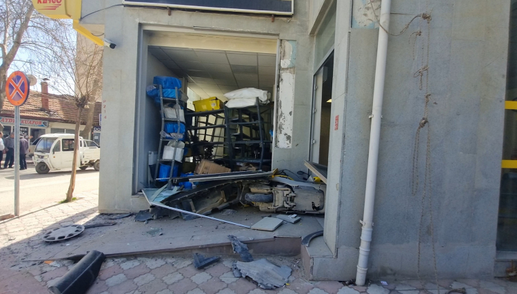 Önüne kattığı motosikleti de sürükleyerek, PTT şubesine çarpan kamyonet, geri giderken çevredeki vatandaşlar tarafından el freni çekilerek durduruldu.