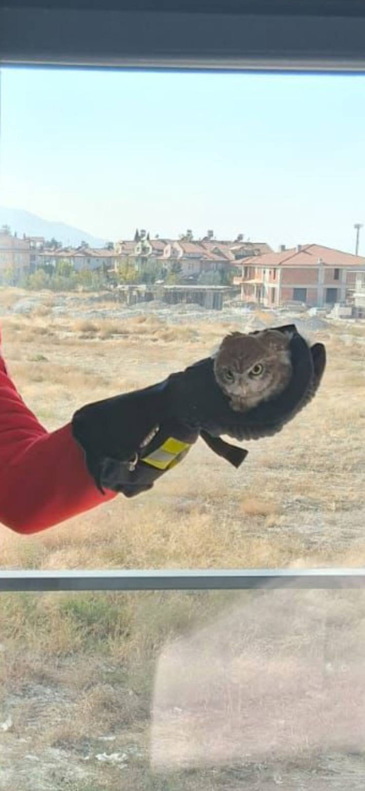 Burdur Emek Mahallesi’nde balkon camına sıkışan baykuş itfaiye ekiplerince kurtarıldı.