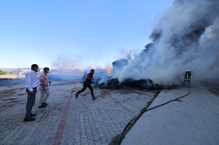 Menderes Mahallesi'ndeki bir mobilya fabrikasının bahçesinde depo olarak kullanılan alanda henüz bilinmeyen nedenle yangın çıktı.