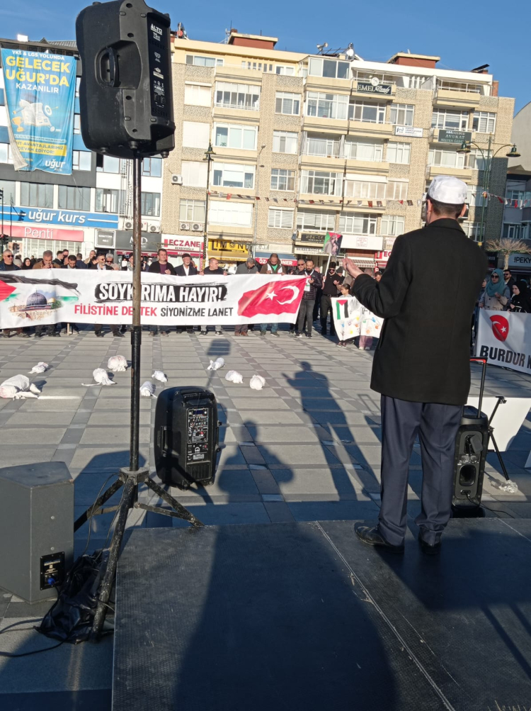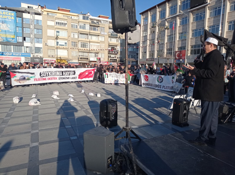 Cumhuriyet Meydanı'na yürüyüşün ardından, Burdur Kudüs Platformu adına bir basın açıklaması yapıldı.