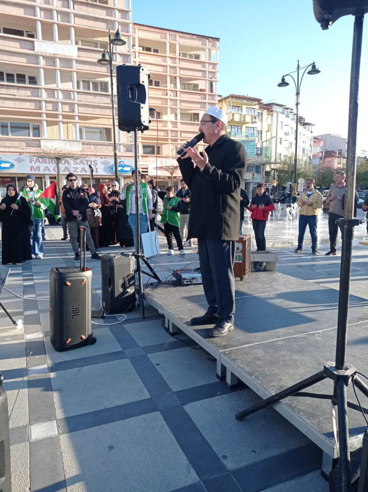 Filistin’e destek yürüyüşü sonunda Kuran'ı Kerim tilaveti okundu. İl Müftüsü Ali Hayri Çelik tarafından bir konuşma yapıldı ve ardından Filistinli kardeşlerimizin bu zulümden bir an evvel kurtulması için dua edildi.