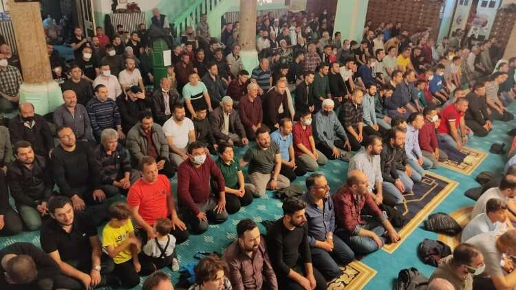 Taşdemir Camisi'nde Teravih namazı ve tesbih namazı kılınmasının ardından Sakal-ı Şerif ziyarete açıldı.