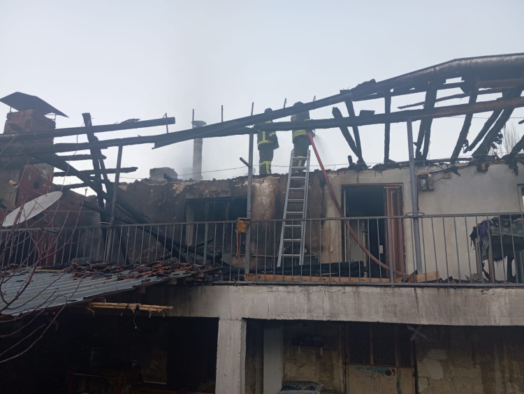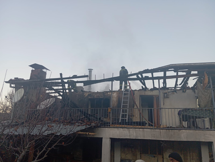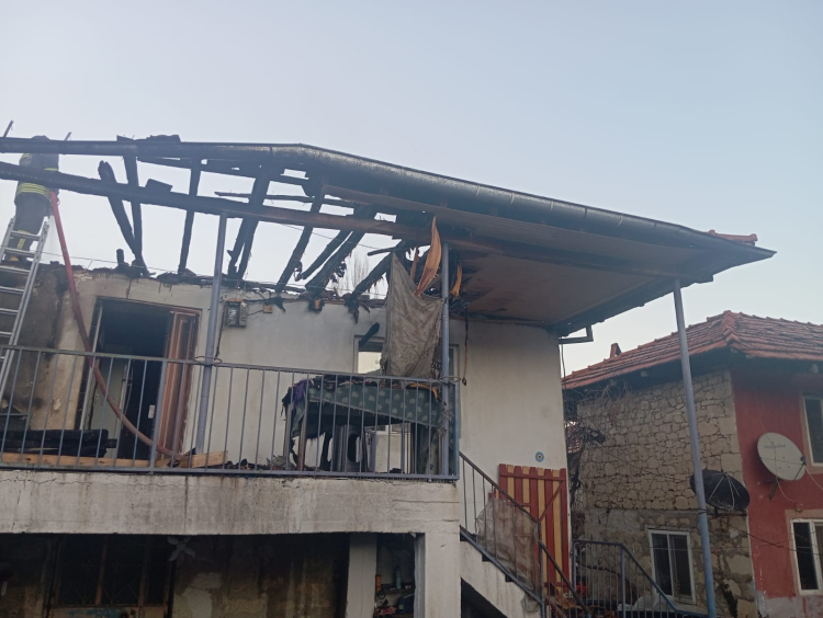 İtfaiye ekibince yangın söndürülürke, evde hasar oluştu.