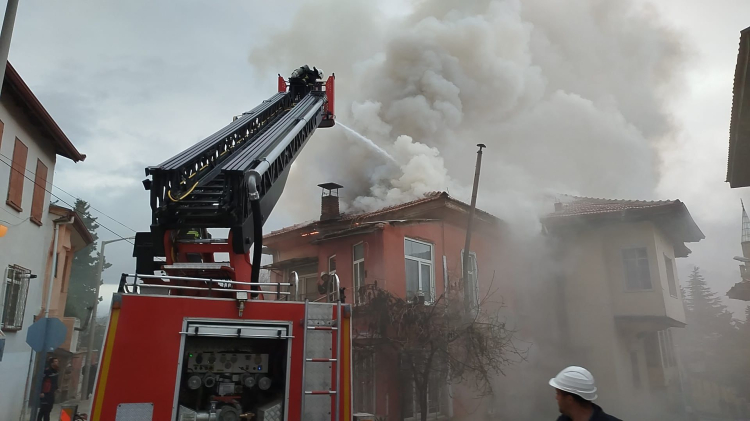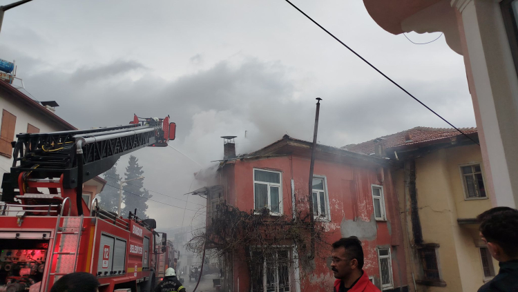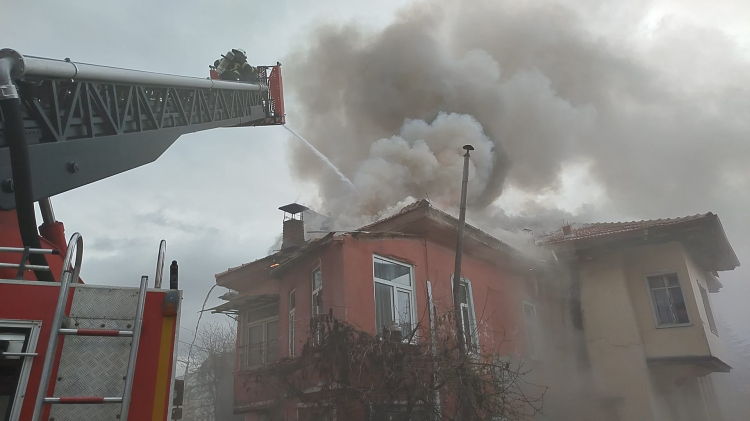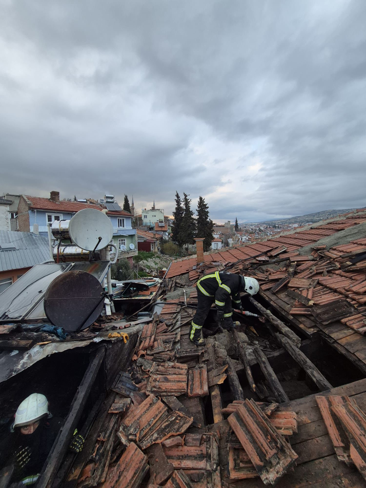 Çıkan yangında ikametin çatısı tamamen yanarak kullanılmaz hale gelirken yangının çıkış nedeni araştırılıyor.