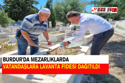 Burdur'un Karamanlı ilçesinde, bayram arefesinde mezarlık ziyaretinde bulunan vatandaşlara belediye ekiplerince lavanta fidesi dağıtıldı.