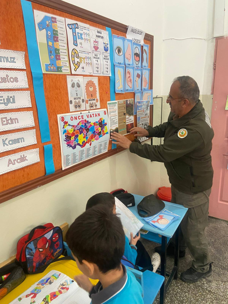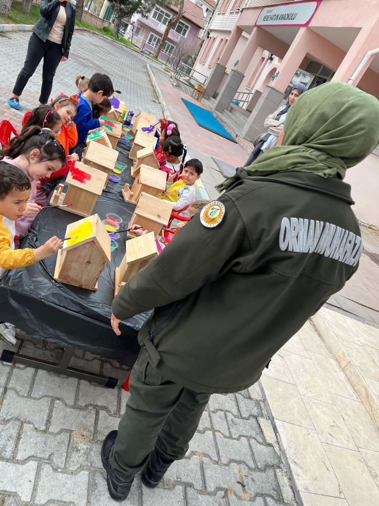 Öğrenciler, Orman İşletme personeli ile birlikte kuş yuvalarını renklendirdi, orman yangınları ve orman koruma konularında eğitim verdi.
