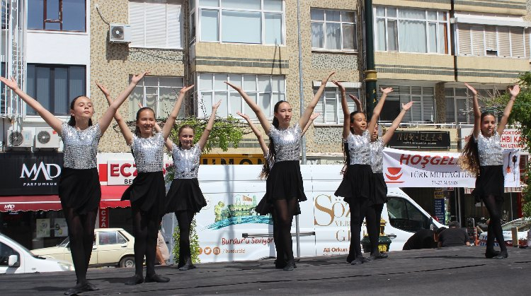Cumhuriyet Meydanı'nda Rus Sanat ve Kültür Derneği çocuklarının renkli dans gösterileriyle başlayan etkinlikte Çatağıl İlkokulu öğrencileri de yöresel halk oyunlarını sergiledi.