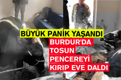 Burdur'da kesime götürüleceği sırada kaçan tosun, penceresini kırarak girdiği sahibinin evinde hasara neden oldu.
