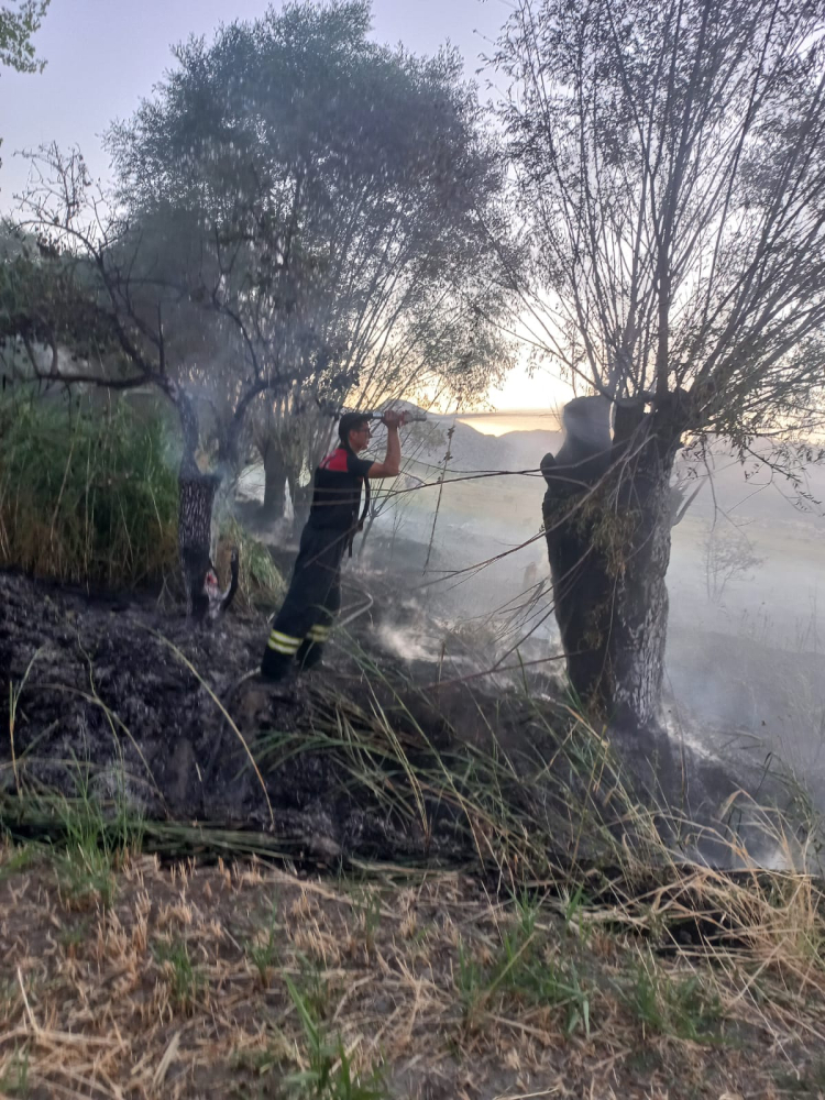 Yangında traktör, 5 dönüm arazi ve 10’a yakın ağaç yandı.