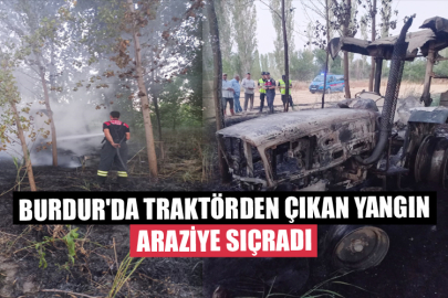 Burdur'un Düğer köyünde traktör kontağının kısa devre yapması sonucu çıkan yangında 5 dönüm arazi, traktör ve 10’a yakın ağaç zarar gördü.