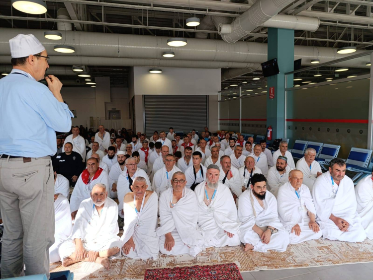 Cuma vaktinin havaalanında girmesi sebebiyle İl Müftüsü Çelik, umrecilere Cuma hutbesini okuyarak Cuma namazını kıldırdı.