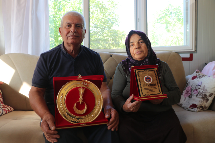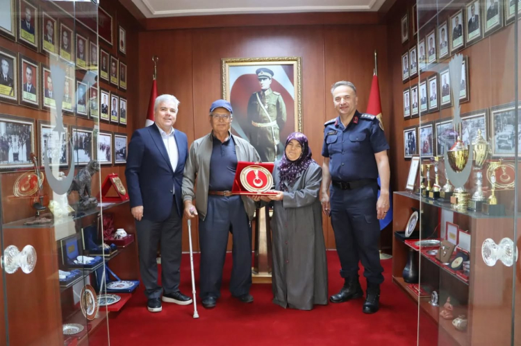 Jandarma Asayiş Vakfı Genel Müdür Yardımcısı Atilla Önal tarafından İl Jandarma Komutanlığı'nda Uysal çiftine bağışlarından dolayı teşekkür belgesi ve şilt takdim edildi.