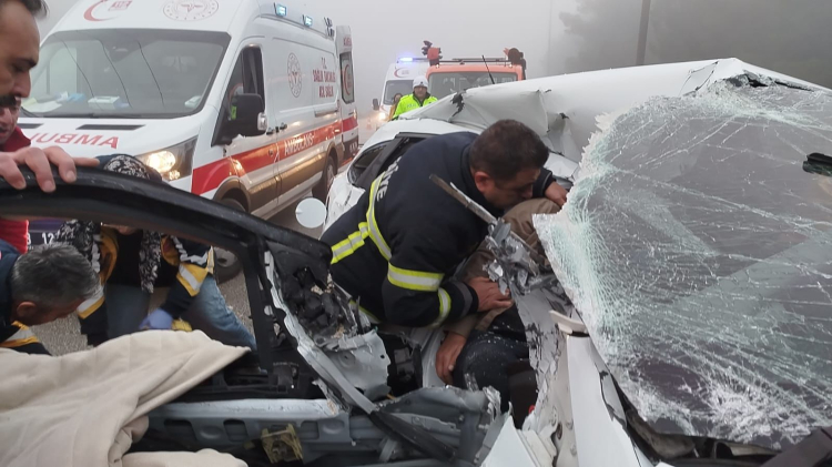 Kazada araçta sıkışan yaralılar Kurtarma ekibi tarafından çıkarılarak sağlık ekiplerine teslim edildi.