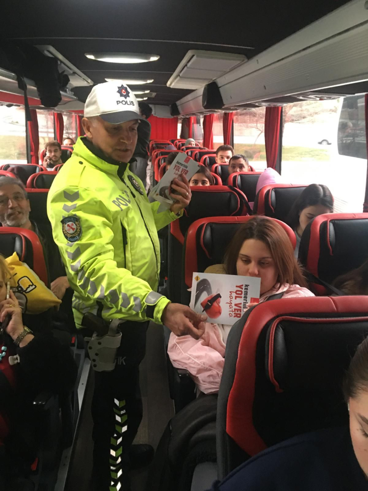 Burdur İl Emniyet Müdürlüğü Trafik ekipleri tarafından Burdur Belediyesi Otobüs Terminalinde 34 otobüs şoförü ve 1270 yolcuya emniyet kemeri kullanımı konusunda bilgilendirme yapılarak broşür dağıtıldı.