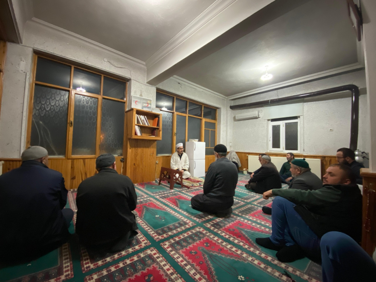 Yassıgüme Köyünde Yatsı namazından sonra cemaat ve gençlerle bir araya gelen Müftü Ali Hayri Çelik, "Allah'a karşı sorumluluklarımız" konulu sohbet etti.
