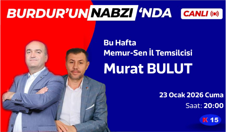 Bilal Karasakal’ın moderatörlüğünü yaptığı programın bu haftaki konuğu Memur-Sen Burdur İl Temsilcisi Murat Bulut olacak. Bugün akşam saat 20.00’de yayınlanacak olan “Burdur’un Nabzı” programını sakın kaçırmayın.