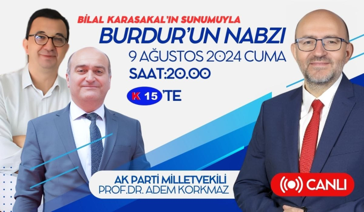 Kanal 15 ekranlarında yayınlanan “Burdur’un Nabzı” programının yarın akşamki konuğu, AK Parti Burdur Milletvekili Prof. Dr. Âdem Korkmaz olacak.